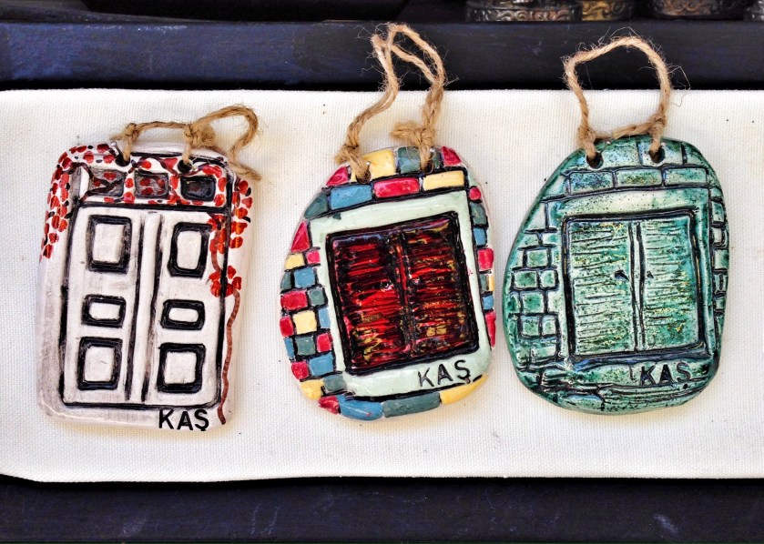 Kaş ile ilgili en çok hoşuma giden şeylerden biri de bu ne alınır kısmı oldu. Bir kere saçma sapan Çin malı herhangi turistik alınacak bir şey yok. Bunun yerine el işi, göz nuru güzel anı objeleri var her yerde. Bu minik “Kaş” kapılarına deli oldum mesela.